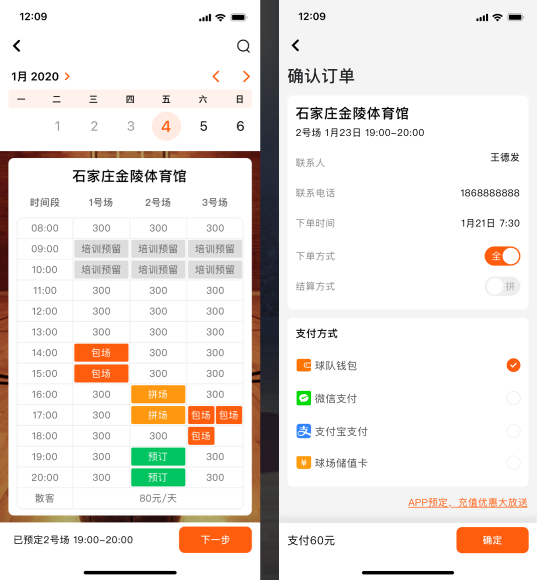 可通过APP线上以拼场的方式分别支付场地费用,